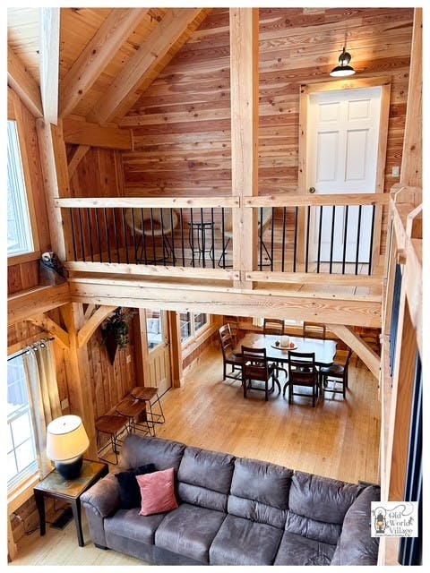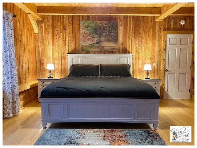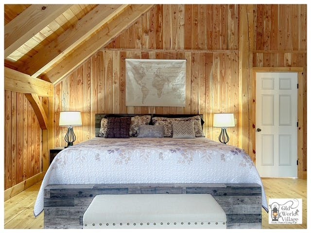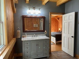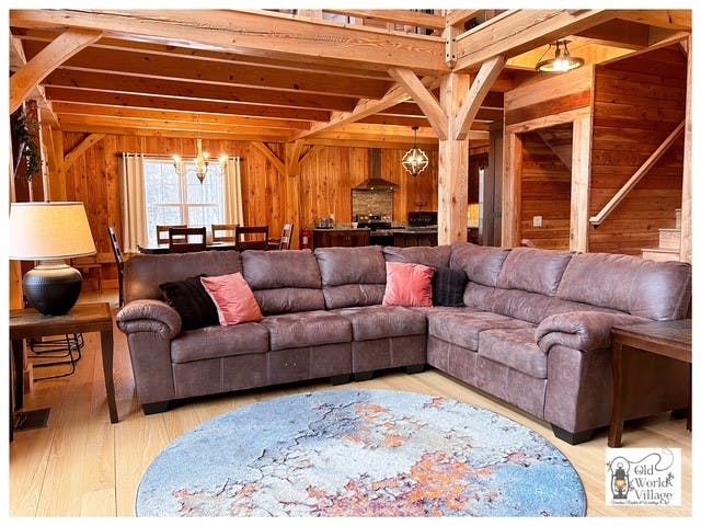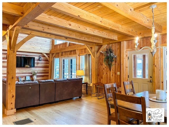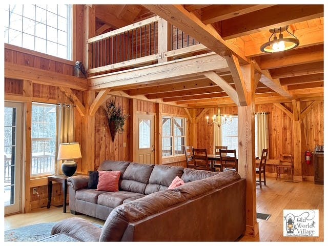 This newly built, custom timber frame house was crafted using traditional techniques to create a warm and inviting atmosphere. Ideal for family gatherings or group retreats, the Lodge offers five spacious bedrooms and 4.5 bathrooms, accommodating up to twelve guests in comfort.